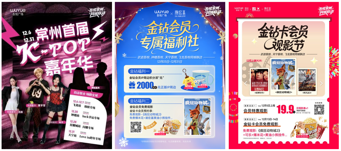 常州作为吾悦商管的发源地,武进、钟楼、天宁、飞龙等老牌项目已在多年运营中积累了137万会员和消费信任。此次联动中,它们承担起“流量池”的角色:通过跨店宣传、视觉统一、权益互通等方式,逐步引导消费者关注并流向星耀城吾悦。