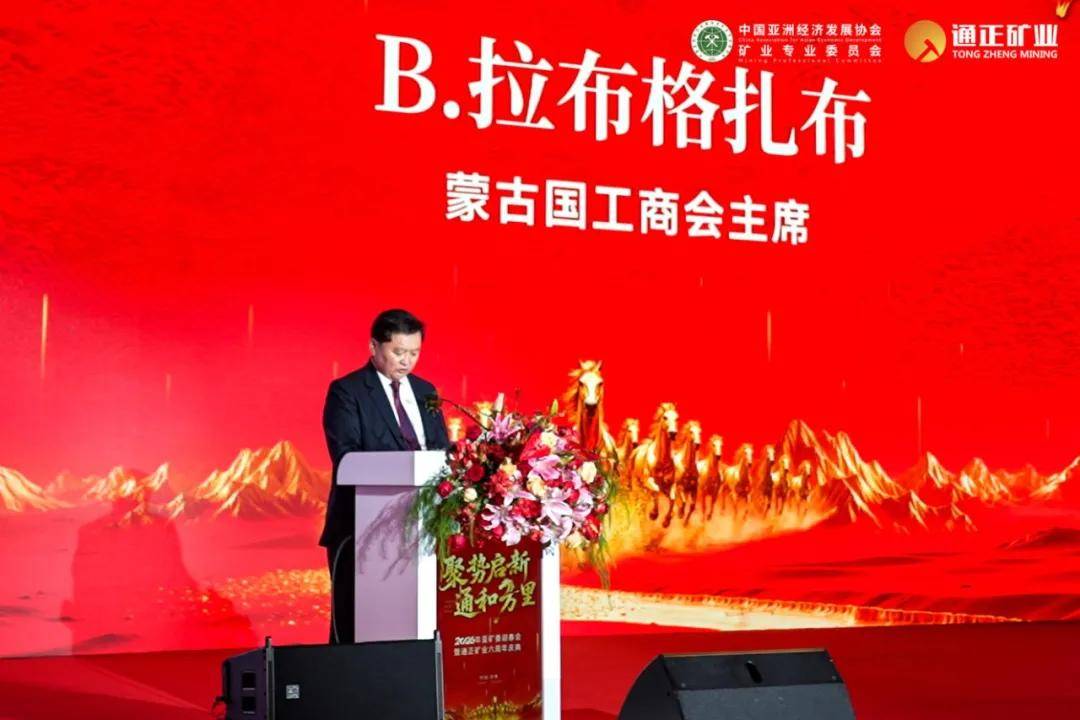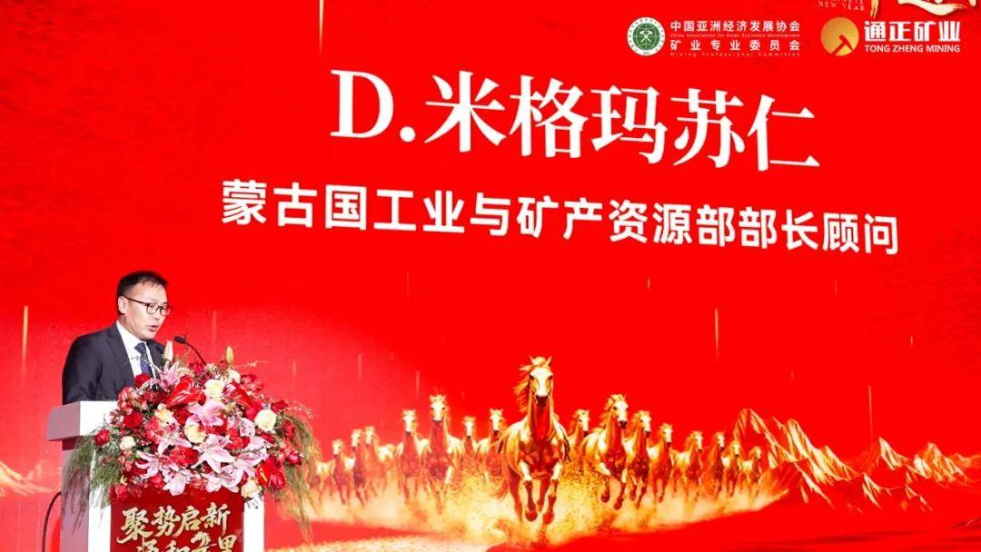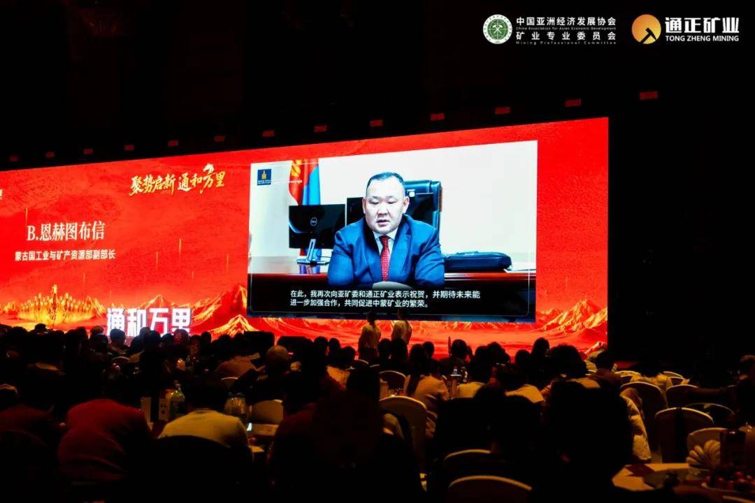 蒙古国工业与矿产资源部副部长B.恩赫图布信通过视频向大会致辞。他代表蒙古国相关部门对庆典的举办表示热烈祝贺,并表达了蒙方对持续深化与中国在矿业领域全方位、深层次合作的强烈意愿。他特别赞赏了以通正矿业为代表的中资企业,为蒙古国经济与社会发展作出的扎实贡献,称其为蒙中友好互利合作的典范。